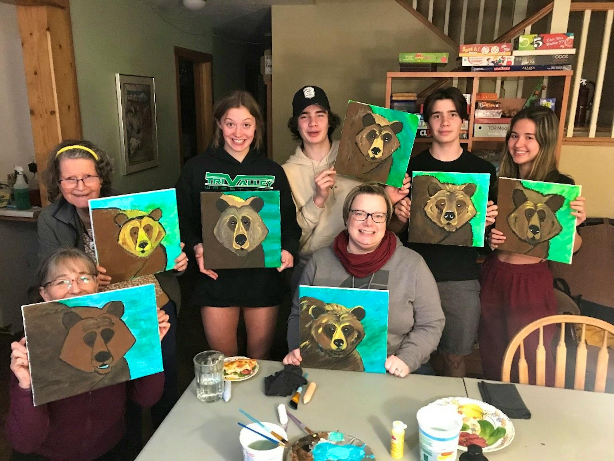 Everyone had a wonderful, creative time during our educational evening. We had bears of all shades – just as in real life, no bear looks exactly the same. In these times of COVID, we are reconnecting with the incredible stress relieving powers of art and having fun with family members of all ages, as displayed by Alaska Program Director Nicole Whittington-Evans’ family paint night photo.