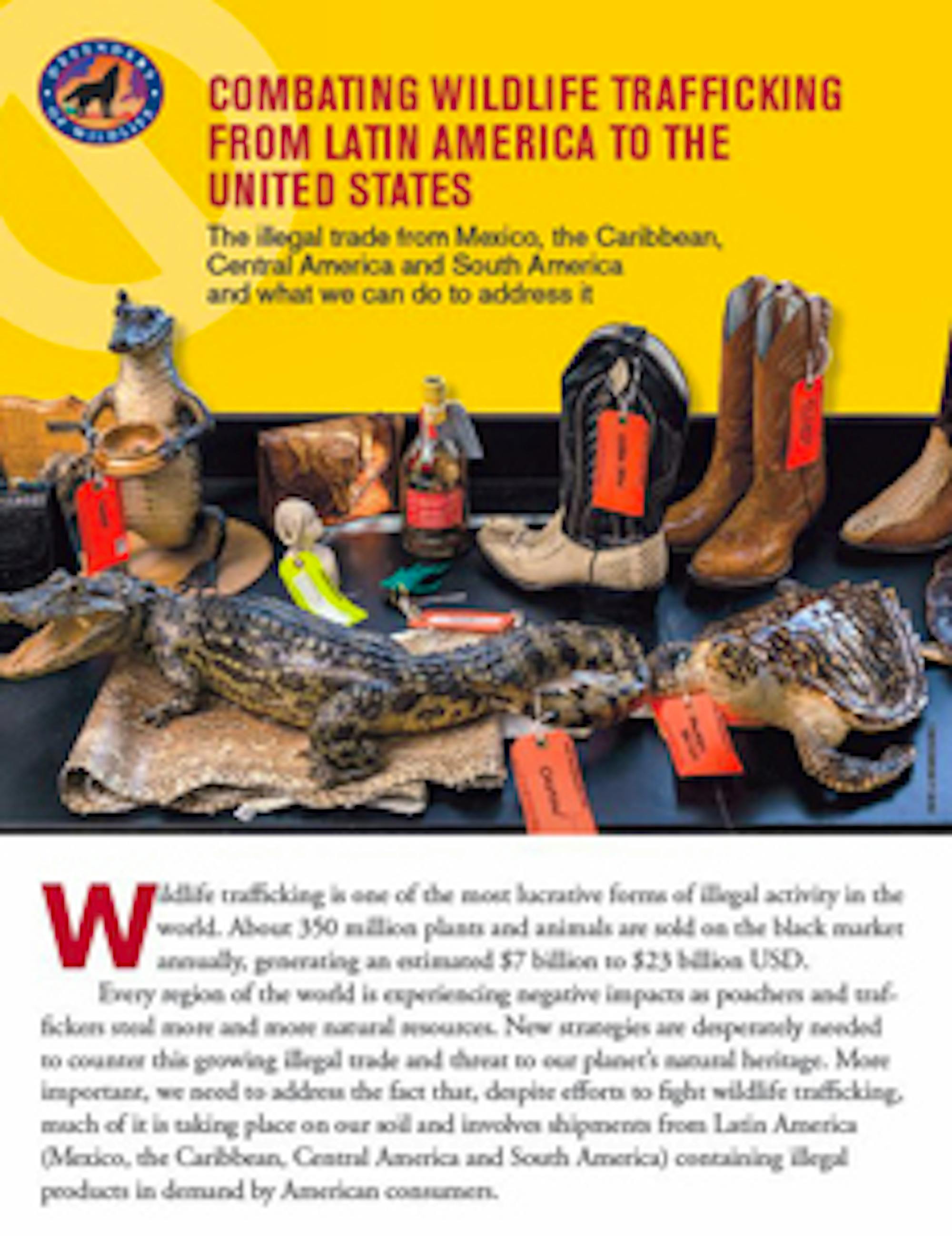 The purpose of this report is to help the United States address this growing crisis by 1) assessing the capacity of the U.S. Fish and Wildlife Service (FWS) to detect and deter wildlife trafficking and to collect and analyze data on this illegal activity; 2) analyzing the effectiveness of existing law enforcement mechanisms and proposals for enhancing the overall capacity of the federal government to counter wildlife trafficking; 3) identifying current patterns of high-volume trafficking from Latin America; and 4) identifying gaps in the existing response to wildlife crimes at our ports of entry.