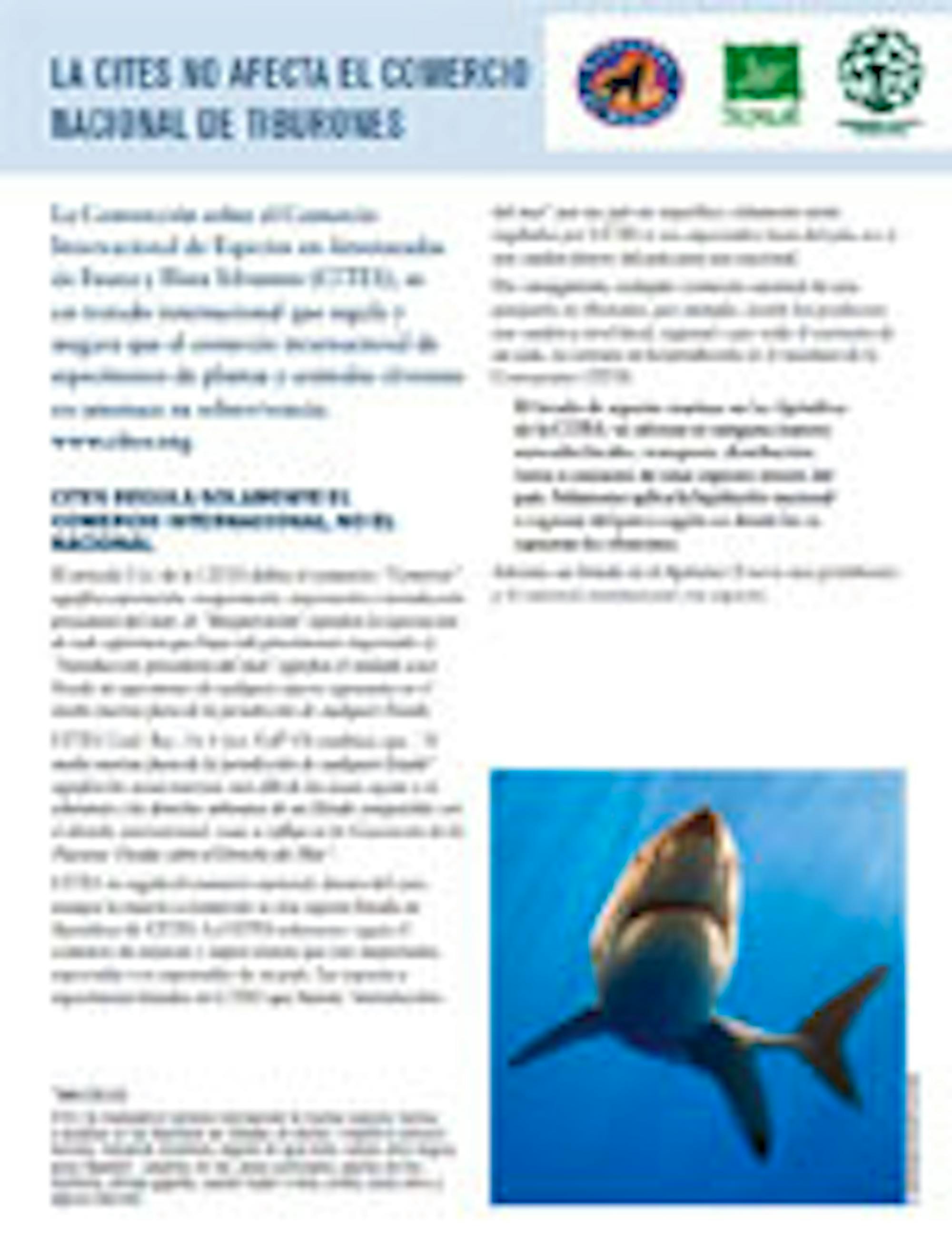 Ese hoja de datos explica cómo las regulaciones para los tiburones en el ámbito de la CITES no se aplican al comercio nacional y aclara los malentendidos con respecto de los Impactos del listado de los tiburones en los Apéndices de la CITES.