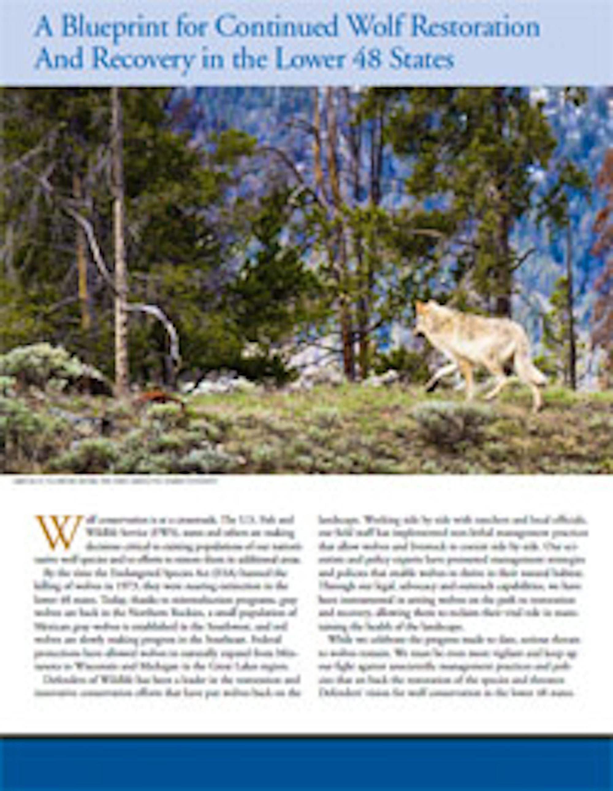This companion document to the full Places for Wolves report explains Defenders' vision for continued wolf restoration and recovery, including the science behind our goals for wolves and our plan of action for achieving them.